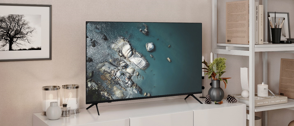 Більше того, безрамковий дизайн телевізорів фактично робить його непомітним, акцентуючи увагу глядача в першу чергу на тому, що транслюється на екрані. Ширина видимої частини бокових рамок становить лише 2,6 мм. Тонкі металеві ніжки вигідно доповнюють зовнішній вигляд телевізора. Для настінного монтажу KIVI пропонує власну лінійку кронштейнів.